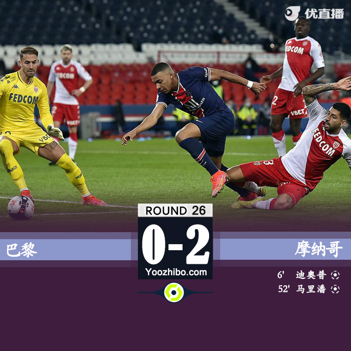 [咪咕全场集锦] 法甲-姆巴佩哑火迪奥普进球 巴黎状态低迷0-2负摩纳哥