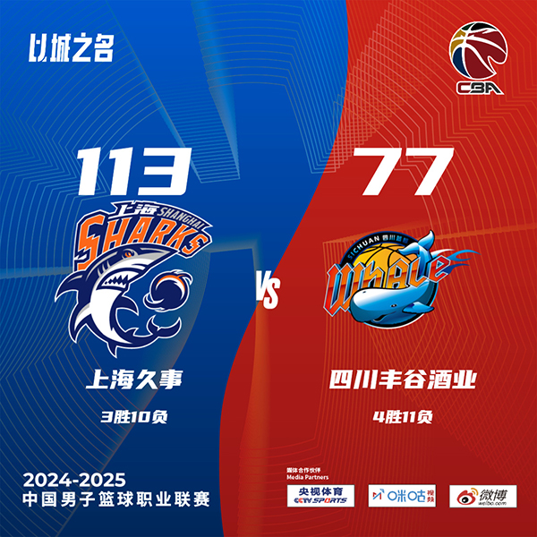 单节比分:39-24、28-26、28-10、18-17(上海在前)。