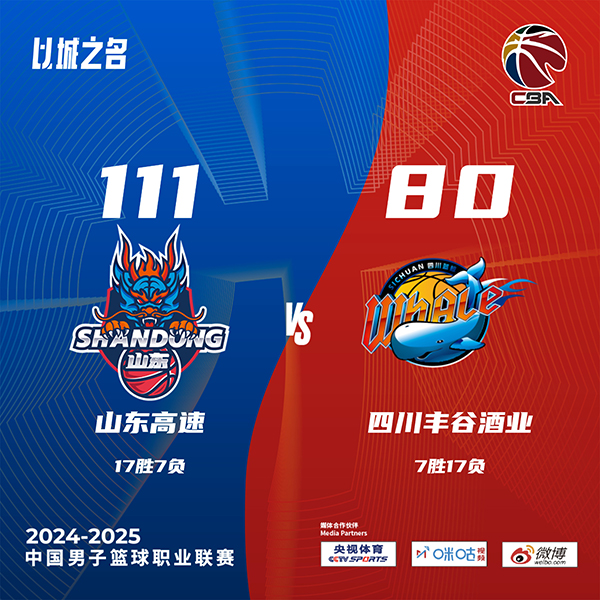 北京时间12月30日讯 CBA常规赛,山东对阵四川,山东最近发挥稳定取得3连胜,四川则是上场比赛1分险胜广州。开场后四川在亨特的带领下打得有声有色,球队外线手感也是不错,山东则是靠克里斯的强势发挥紧咬比分。第二节盖利和摩尔联手爆发,四川单节打出34-15的攻势建立起领先。易边再战,四川进攻依旧没有起色,山东继续扩大领先优势。最后一节虽然四川进攻找到感觉,但他们防守完全无法限制山东,最终山东111-80大胜四川取得4连胜。