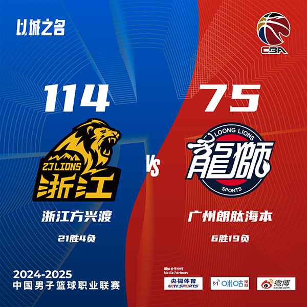 广厦(21-4):卡尔顿27分7篮板、布朗16分、孙铭徽15分12助攻10抢断、胡金秋13分2篮板、奈特13分10篮板3助攻、朱俊龙10分3篮板3助攻、赵岩昊8分5篮板、赵嘉仁7分3助攻、吴骁2分8篮板3助攻、段立谦2分、林秉圣1分2篮板。