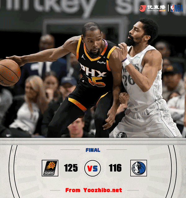 北京时间3月10日讯 NBA常规赛,独行侠主场迎战太阳。独行侠32胜32负排西部第10,已经遭遇4连败;太阳29胜34负紧随其后。比赛开始,双方开场势均力敌,比分交替领先,普拉姆利连续暴扣带队完成8-0的攻击波取得领先,次节双方围绕两位数的分差展开拉锯战,马绍尔高效发挥,太阳多点开花给出回应,半场战罢太阳60-54领先独行侠。易边再战,双方大打对攻,克莱连投带罚独得9分,杜兰特和比尔联手高效输出帮助太阳保持优势,末节太阳持续发力将分差拉开到16分,独行侠大势已去无力回天。最终,太阳125-116击败独行侠,送给对手5连败。