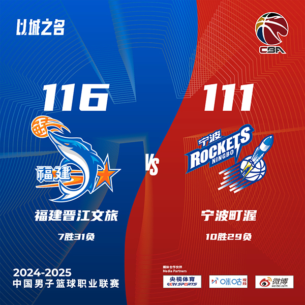 24直播网讯北京时间3月12日讯 CBA常规赛,福建主场迎战宁波,福建2连败后6胜31负联盟垫底,宁波2连胜后10胜28负联盟第16位。比赛开始,福建率先发力打出10-4开局,宁鸿宇状态出色弹无虚发连得10分回应,邹阳手感也不错,双方展开对攻战,比分胶着,首节宁波领先2分,次节乔丹-霍华德上来连中三分砍下10分助宁波拉开比分,但奎因-库克手感不错能回应,联赛路易斯-金连续4记三分反超比分,半场福建领先3分。下半场,双方命中率都有下降,但比分还是很胶着,王子瑞接连突破上篮砍下7分帮助宁波反超,但路易斯-金联手库克回应7-0守住2分领先,末节诺伊发力里突外投帮助宁波取得领先,刘金雨关键三分,路易斯-金里突外投连砍7分再反超,比赛趋于白热化,马奇关键两次失误,黎伊扬和路易斯-金连续抢断帮助福建反超比分,邹阳失误后王俊杰也失误,邹阳两罚杀死比赛,宁鸿宇三分不中,最终福建116-111险胜宁波。