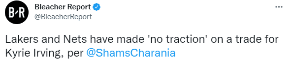 shams表示:湖人对于欧文的任何交易报价都没有吸引力,没有什么新鲜事,我不确定我们是否会看到这笔交易的发生。