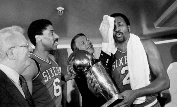1983年费城4-0湖人夺冠,1984年首轮以2-3不敌篮网出局,历史上第一次卫冕冠军首轮被淘汰;