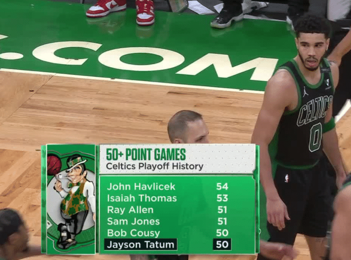 第一,50分刷新塔图姆季后赛生涯得分新高!