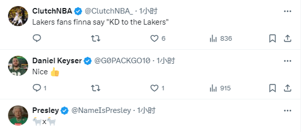 杜兰特称赞詹姆斯是历史最佳引热议,有球迷直言两个goat,还有球迷表示湖人球迷最终会招募杜兰特加盟湖人。