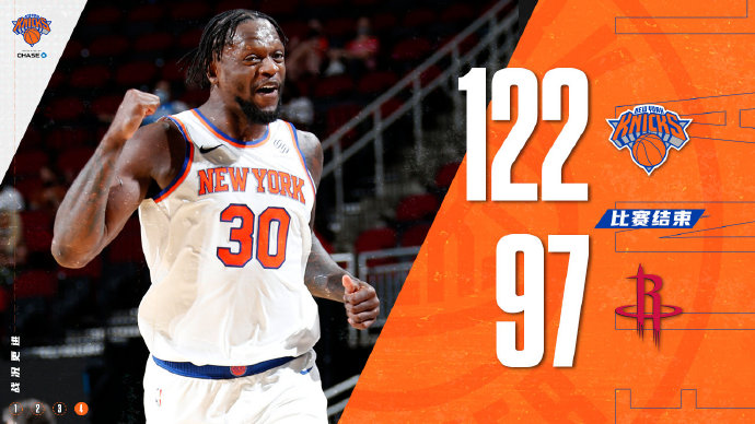 [QQ全场集锦] 兰德尔31+7+6 罗斯24+6 伍德19+8 尼克斯大胜火箭