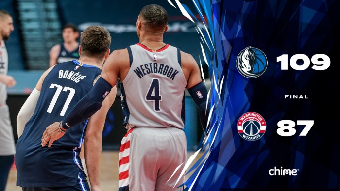 [微博全场集锦] 东契奇26+8+6 威少26+14+5 独行侠战胜奇才取得4连胜