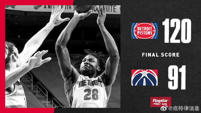 NBA常规赛活塞主场对阵奇才,开场后活塞率先打出攻势取得领先,约什-杰克逊逐渐展现出不错手感帮助活塞扩大领先,第二节活塞多点开花继续扩大领先,虽然威少努力追分,但奇才整体状态一般,上半场活塞87-68领先奇才。下半场回来虽然活塞手感有所回落,但奇才手感仍旧一般,第四节活塞再次打出攻势锁定胜局,最终活塞120-91大胜奇才。