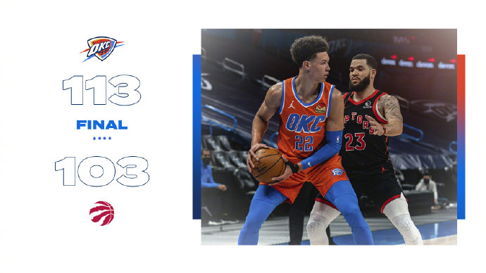 24直播网3月31日讯 3连败的猛龙与3连败的雷霆不期而遇,此役雷霆的亚历山大、波库舍夫斯基和猛龙的洛瑞均高挂免战牌。首节猛龙下起一波三分雨,阿奴诺比、特伦特和西亚卡姆的连续六记三分率队打出17-3的攻击波早早便确立了领先优势,雷霆也不甘示弱,他们很快就回敬一波15-3缩小分差,次节猛龙的三分雨仍在继续,雷霆则靠着摩西-布朗、罗比在内线的优势紧咬比分。下半场雷霆三军用命终于反超了比分,猛龙三分命中率急剧下滑,再加上内线篮板被完爆(全场输了29个),很快便陷入被动局面,末节米哈伊柳克用连续的高光表现带领球队扩大分差,猛龙则是手感全无,单节仅得到14分,最终雷霆主场以113-103力克猛龙,终结自己三连败的同时也送给猛龙四连败。
