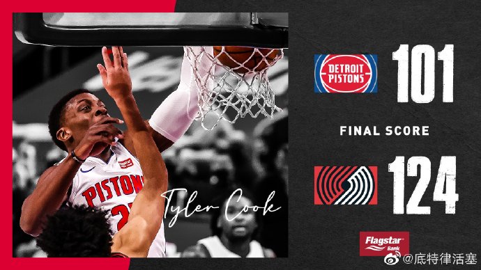 活塞(13-34):格兰特30分2篮板4助攻,普拉姆利18分3篮板2助攻,萨本-李2分6助攻,泰勒-库克7分3篮板,斯图尔特6分4篮板,弗兰克-杰克逊8分5篮板,迪亚洛19分7篮板3助攻,约瑟夫11分9助攻2断