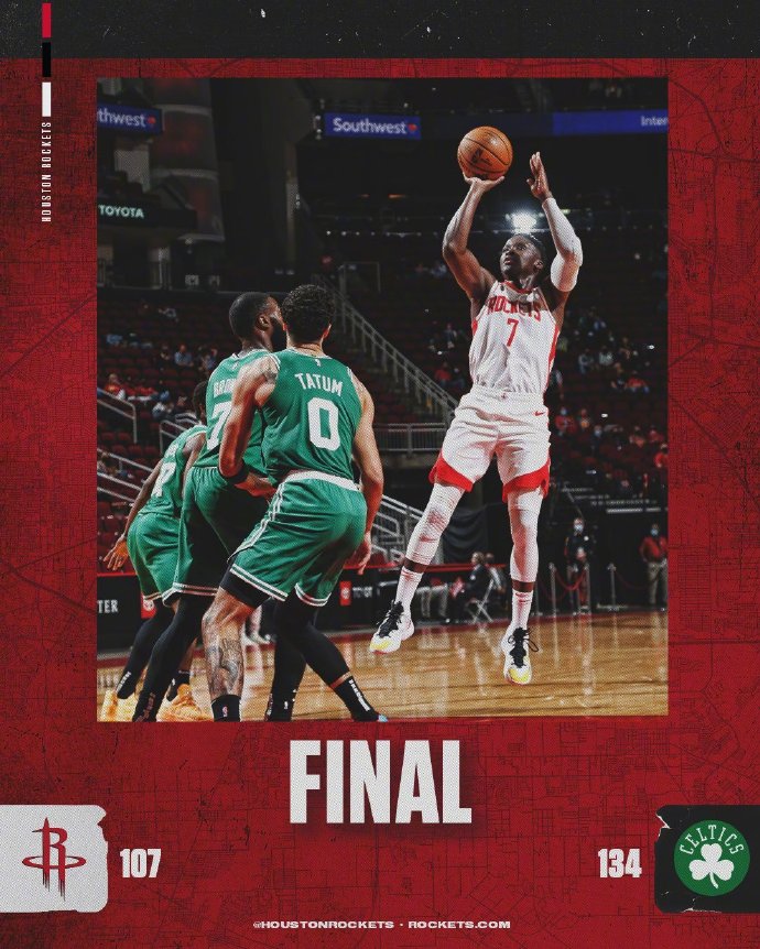 24直播网3月15日讯 目前遭遇15连败的火箭坐镇主场迎战凯尔特人,沃尔和戈登本场因伤继续缺阵。上半场的争夺火箭仅仅打了半节时间的好球,他们在奥拉迪波的带领下首节最多拿到8分的领先,但绿军顶住火箭三板斧后迅速占据上风,首节后半段在奥杰莱连续两记三分带动下打出18-6的攻势反超比分,次节开局绿军延续手感又是一波7-0的进攻,而火箭在这一节前6分钟里仅泰特打入唯一的运动战进球,半场结束时绿军已经手握13分领先。第三节火箭仍然没有找回进攻手感,这一节他们仅得19分,而防守端则被绿军彻底打穿,绿军单节再胜19分并将领先拉大至32分早早锁定胜局。最终,凯尔特人客场大胜火箭,并送火箭16连败,16连败也创造了火箭队史连败最长纪录。