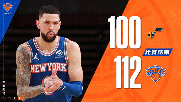 24直播网1月7日讯 NBA常规赛,尼克斯主场迎战爵士,尼克斯近来状态不错,收获两连胜,爵士此前则是大比分不敌篮网,本场比赛前,两队战绩均为四胜三负。本场比赛开局,爵士一度迷失,半节仅得到4分,好在他们及时调整了状态,在首节结束时以27-20领先对手。次节回来,爵士再进一步,将分差以56-44扩大至两位数进入下半场。易边再战,场上局势风云突变,尼克斯一步步迫近分差,并在最后时刻抓住对手的失误将比分以78-75反超进入第四节。末节回来,里弗斯成为奇兵,他在最后五分钟内连得14分,帮助尼克斯锁定胜局,最终,尼克斯以112-100击败爵士,收获三连胜。