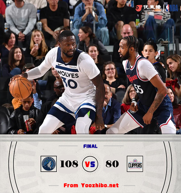 24直播网讯12月5日 NBA常规赛今日继续开打,快船今日坐镇主场迎战森林狼。两支球队在11月底有过一次交手,当时森林狼主场1分险胜。首节之争快船仅仅抵抗了半节的时间就遭遇滑铁卢,他们在本节后5分30秒里崩溃仅得4分,森林狼则抓住机会命中5记三分送出19-4的攻势一举拉开比分;次节森林狼上来再送11-3的攻势将分差拉大扩大至20分以上;快船毫无办法攻防崩盘,兰德尔予取予求半场20分并帮助森林狼取得27分优势进入下半场。休息归来场面依旧,快船这一节手感全无仅得18分,三节下来命中率为31%森林狼完全感受不到抵抗力并在第三节就取得36分领先早早奠定胜局。这之后比赛早早进入练兵时间,虽然他们也打出了17-5的攻势但制造不了任何威胁。最终,森林狼客场再胜快船完成双杀,同时也终结快船主场9连胜。