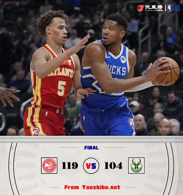 24直播网讯北京时间12月5日讯 NBA常规赛,雄鹿主场迎战老鹰,雄鹿目前状态正佳,7连胜后11胜9负排在东部第5位;老鹰则是4连胜后11胜11负排在东部第6位。比赛开始,字母哥联手利拉德带队打出16-6不错开局,但雄鹿替补仅波蒂斯状态在线,老鹰替补则是多点开花,接连冲击内线追分并首节反超3分,次节里萨谢里突外投扩大领先,字母哥和利拉德苦苦支撑进攻,博格丹单节3记三分轰下13分,半场老鹰领先到双位数。下半场,字母哥和利拉德依然撑起球队进攻,雄鹿接连外线三分一度追到个位数,但亨特接连三分回应,老鹰全民皆兵三节还保持12分领先,末节双方围绕着10分左右分差继续展开拉锯战,老鹰给机会雄鹿始终把握不住,最后老鹰“砍”字母哥,但他罚球不稳,最终老鹰119-104力克雄鹿,拿到5连胜的同时终结对手7连胜。