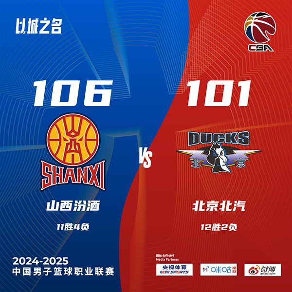 北京时间12月9日讯 CBA常规赛,山西对阵北京,北京最近状态不错取得6连胜。开场后山西率先打出攻势以7-0开局,北京靠杰曼和所罗门的发挥追上比分,两队都犯规不断,多次送给对手罚球机会,北京依靠两记三分建立领先。第二节上来两队依旧是犯规频频,周琦补篮加三分连得5分帮助北京巩固优势,张宁和迪亚洛就联手为山西追上比分。易边再战,两队依旧打得十分胶着,而且场上还是犯规不断,奥莫特连续强攻帮助北京取得微弱优势。最后一节回来刘传兴强势发挥帮助山西反超比分,陈盈骏及时站出来连续得分回应,关键时刻张才仁突破分球失误,周琦无脑犯规,张宁罚球稳健,最终山西106-101终结北京6连胜。