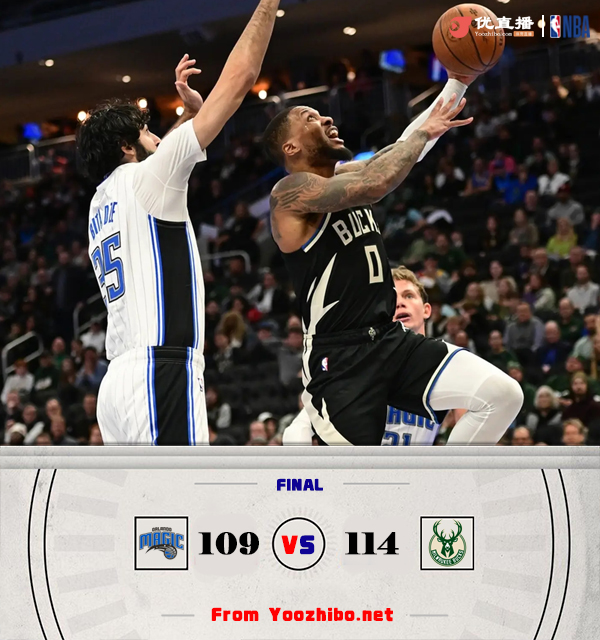 北京时间12月11日讯 NBA杯东部半决赛率先打响,雄鹿主场迎战魔术,魔术这边,班凯罗和小瓦格纳接连伤停,而雄鹿则尽遣主力,普林斯和助教哈姆NBA杯战绩11胜0负保持不败。此役一上来双方稍显慢热互相试探,魔术率先找到感觉,多点开花的他们逐渐确立优势,字母哥连投带罚苦苦支撑,首节结束时魔术领先8分,次节回来,雄鹿状态复苏回敬10-3攻击波缩小分差,中段双方你来我往陷入僵持,波蒂斯突然发力单节独得12分,字母哥和利拉德续上火力,半场战罢,雄鹿反超1分。易边再战后双方进攻火力放缓,魔术进攻滞涩单节仅得到11分,字母哥予取予求率队扩大优势,雄鹿带着8分优势进入末节,末节上来,萨格斯突然爆发率队抹平分差,决胜时刻利拉德里突外投连拿7分,字母哥关键两罚稳稳命中,霍华德造犯规后前两罚全中,但最后一罚故意不中但违例,利拉德连中罚球终结悬念,最终雄鹿114-109力克对手。
