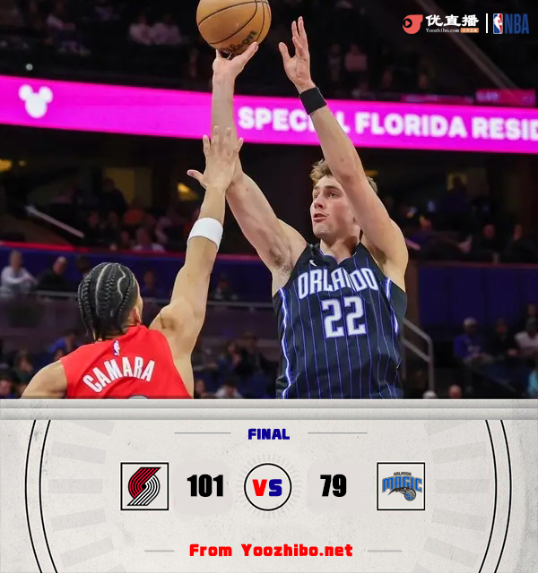 24直播网讯 1月24日讯 NBA常规赛,魔术主场迎战开拓者。魔术近期4连败,以23胜22负暂列东部第8,开拓者15胜28负排西部倒数第3。小瓦格纳本场迎来复出。上半场,双方均表现慢热,连续打铁失误,得分非常困难,次节开拓者进攻回暖,安芬尼-西蒙斯得分助攻一肩挑带队占据场上主动,魔术依然失误连连,半场战罢开拓者47-39领先魔术。下半场,开拓者多点开花保持优势,魔术频频造成杀伤苦苦支撑,末节开拓者持续发力一举将分差拉开到20分杀死比赛。最终,开拓者101-79击败魔术,客场过关。