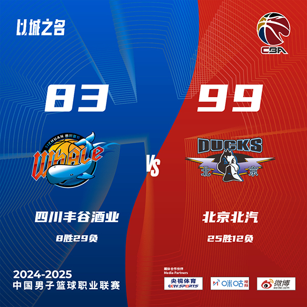 北京时间3月7日讯 CBA常规赛,四川主场迎战北京。四川7连败后8胜28负排在第17位,北京4连胜后24胜12负排在第6位。本场比赛,萨姆纳缺阵。比赛开始,北京很是慢热,打了4分钟没有运动战进球,四川打出9-2开局,随后双方命中率都不高,曾凡博接连反击,周琦连续内线打成,北京追到差4分,次节曾凡博有攻有传联手周琦带队反超比分,但王薪凯接连外线回应,曾凡博压哨中投助北京半场还领先1分。下半场,北京外线连续发炮,纳托尔连中三元,曾凡博也连续外线命中,北京顺势领先到10分,末节北京上来7-0继续拉大比分,四川打了近3分钟才拿到首分,随后北京发力拉开20分以上领先,最终北京99-83轻取四川,拿到5连胜同时送对手8连败。