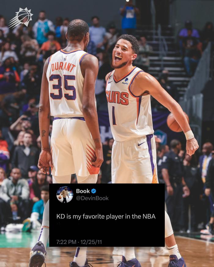 此前太阳对阵黄蜂,杜兰特迎来太阳生涯首秀,全场15投10中、三分4中2拿到23分6篮板2助攻2盖帽,复出首战就在攻防两端都打出不可思议的表现;另外值得一提的是,布克11年前的言论被挖,当时布克发推:杜兰特是我最喜欢的NBA球员。