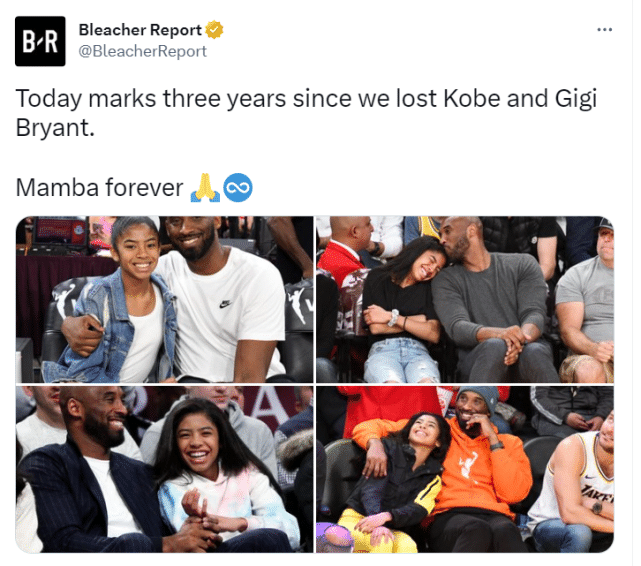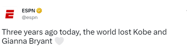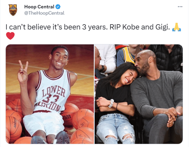 Hoop Central写道:“不敢相信已经过去3年了,安息吧,科比和Gigi。”
