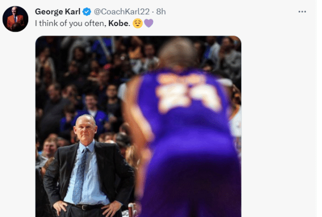 名帅乔治-卡尔写道:“我经常会想起你,科比。”