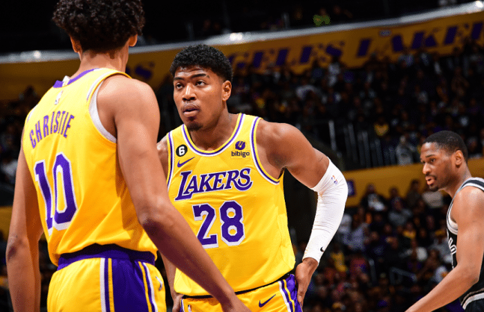 八村垒首次身穿湖人28号球衣替补出战,全场出战22分钟,7投4中拿到12分6篮板1助攻1抢断,在场正负值+17全场最高,换言之,当八村垒上场时,湖人赢了马刺17分。
