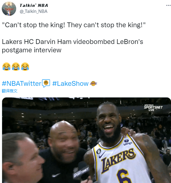 詹姆斯接受记者采访时,哈姆突然闯进来,满脸笑容并且连续高呼:拦不住国王!他们都拦不住国王!此战詹姆斯咧嘴大笑直接笑开了花。