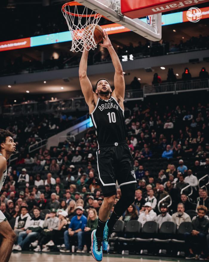 西蒙斯下场后,杜兰特和欧文两大巨星开火,连中三分把领先优势扩大到将近20分;西蒙斯重新上场,倒地拼抢地板球被吹犯规;杜欧单节合砍20分,三节打完篮网领先17分;末节两队首发继续打,为常规赛提前练兵,篮网三巨头早早打卡下班,字母哥仍旧继续打,雄鹿输掉比赛。