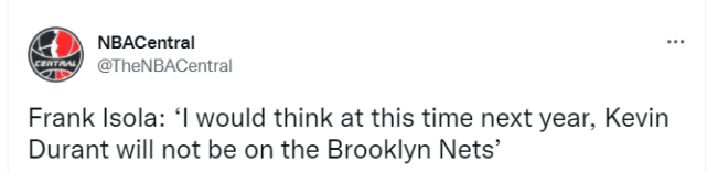 24直播网08月30日讯 虽然杜兰特已经撤回了交易申请,但纽约名记弗兰克-伊索拉认为他只会留守篮网一个赛季。北京时间8月30日,伊索拉在节目上表示:“明年的这个时候,我不认为杜兰特还会留在篮网。”
