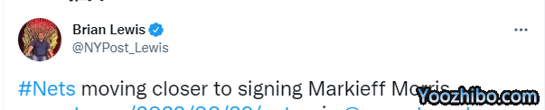 杜兰特留守后篮网寻求补强前场,先是用训练营合同签下渡边雄太,猛烈追求湖人旧将大莫里斯,据篮网记者Brian Lewis报道,篮网已经接近签约大莫里斯,后者有望助杜兰特和欧文冲冠。