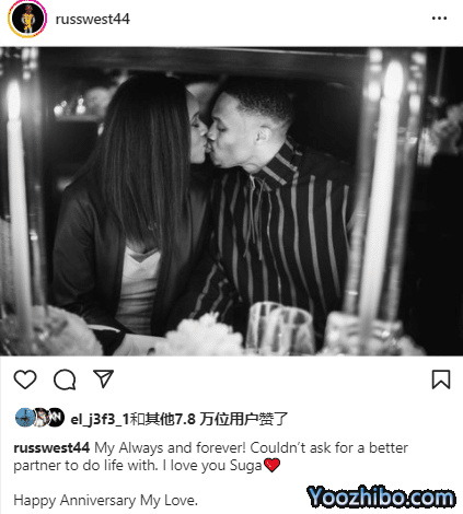 威少深陷交易流言之中,似乎并没有影响他的心情,威少晒出与爱妻的亲密合影,配文写道:我的永远!永远找不到更好的伴侣共度余生,我爱你,Suga(妮娜的昵称),结婚纪念日快乐,我的爱人。
