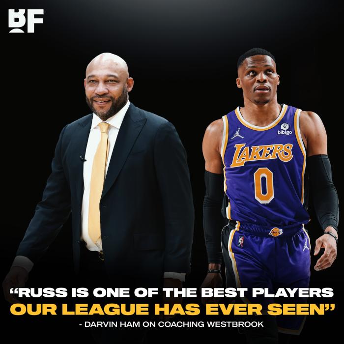 此前湖人新帅哈姆公开表示威少绝对是球队未来的关键部分,还表示已经和威少交谈过,希望威少做出牺牲并且加强防守;威少本人对哈姆执教湖人很兴奋,参加了哈姆就职湖人主帅的第一次新闻发布会;不过对于新赛季是否愿意替补出战,威少拒绝回答,只是扭头一笑了之。