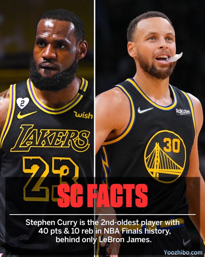 34岁库里成为詹姆斯之后历史上总决赛单场40+10第二老球员;今年的库里犹如18年的全力詹,同样是大战绿军,同样是独挑重担。
