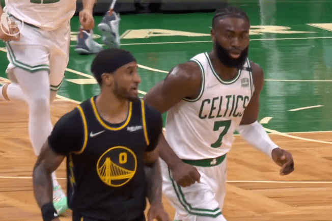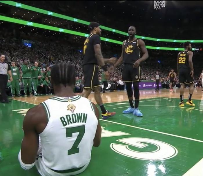 24直播网06月09日讯 ,勇士和凯尔特人总决赛G3正式开打,杰伦-布朗第一节再次大爆发,单节9投6中、三分4中3轰下17分5篮板3助攻,晃倒小佩顿太狠,惨遭格林大帽后被喷垃圾话挑衅,绿军球迷为布朗抱不平,全场怒喷格林垃圾。