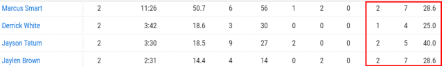 那些关于库里防守不好的刻板印象,真的该改变了。就拿总决赛前两场的防守数据来说吧,库里在对位防守绿军球员时,表现是非常出色的。数据显示,库里对位防守下,斯马特7中2,怀特4中1,塔图姆5中2,布朗7中2。