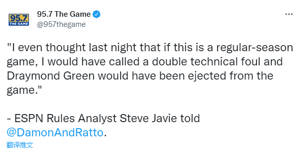 24直播网06月07日讯 ,NBA退役名哨、ABC解说嘉宾史蒂夫-贾维在节目中再次谈到总决赛G2格林和布朗之间的冲突事件,直言:我昨晚甚至觉得如果这是一场常规赛,我会吹双方技术犯规,而追梦将(累积2个技犯)被驱逐出场。
