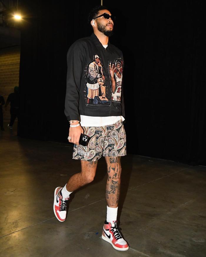 G2赛前,塔图姆身穿印有科比和乔丹庆祝夺冠照的外套出镜,如此入场照引热议,这表达了塔图姆对待G2的决心。