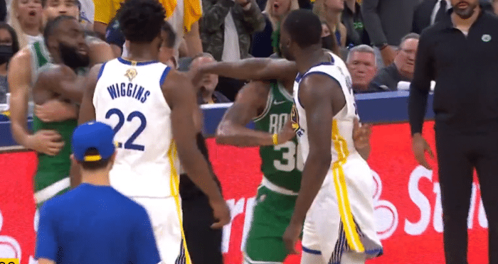 24直播网06月06日讯 ,勇士和凯尔特人总决赛第二场正式打响,格林与布朗冲突,争吵险些打起来,但裁判没有吹罚技犯,格林逃过被驱逐;此前格林已经吃到一次技犯。