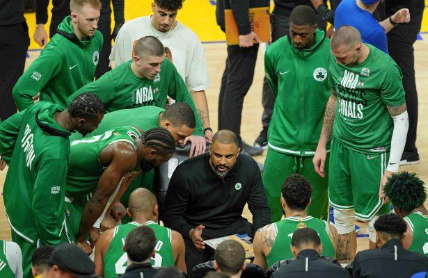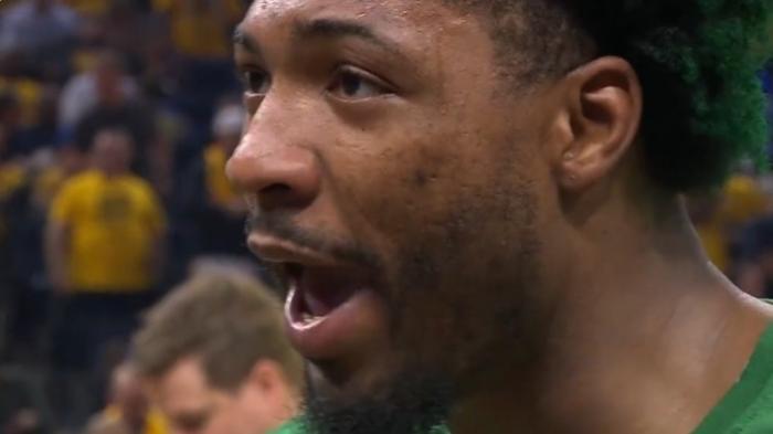 24直播网06月04日讯 昨天凯尔特人客场15分逆转勇士,从而拿下总决赛G1,今日NBA官方晒出斯玛特激情训话一幕,告诉队友要防出去,故意让勇士往内线突。