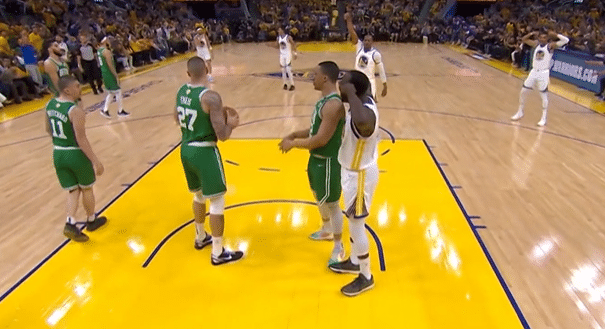 当比赛最后时刻,霍福德打成2+1,直接为凯尔特人锁定胜局,比赛进入到垃圾时间的时候,霍福德秀肌肉庆祝,这样的动作不仅仅是庆祝球队取得胜利,更是有仇必报,隔空回应上半场追梦格林的秀肌肉庆祝。