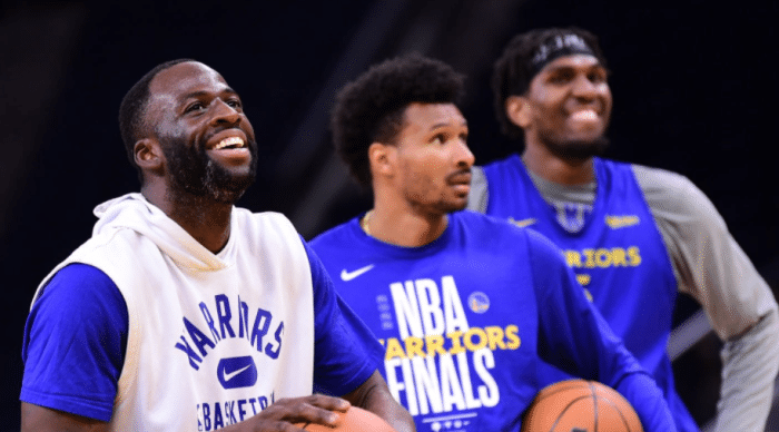 24直播网06月02日讯,勇士全队在总决赛开打前最后一次进行全队合练,伊戈达拉、小佩顿和波特都参加全部训练,全员备战G1欢乐多;凯尔特人众将也在勇士主场进行训练,塔图姆直指总冠军。