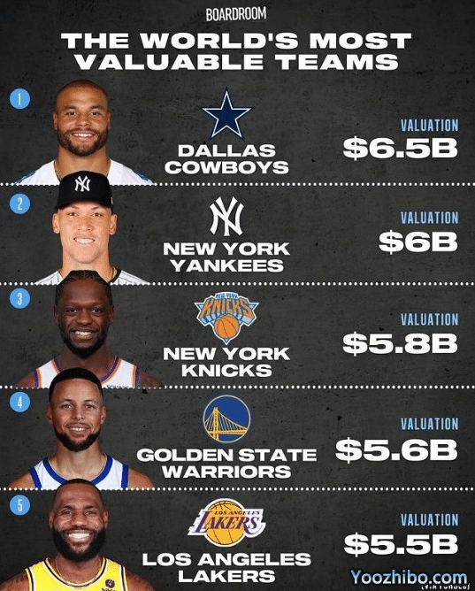 24直播网06月01日讯 福布斯给出了最新的球队市值排行,top5里面就有3支球队是NBA球队,可见NBA球队最新市值出炉,位于top3的球队是尼克斯、勇士和湖人,应该不算太意外吧。