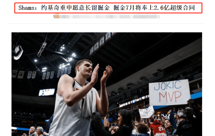 就在今天,据NBA记者Shams报道,约基奇已经承诺,将长留掘金队,而双方将达成5年2.6亿美元的超级顶薪合同,这也是史上最大合同之一。据报道,约基奇兄弟一起和掘金队管理层会面,双方的愿景一致,所以,达成续约不存在任何问题,在约基奇签字之后,他在未来至少5年时间,都会是掘金队的一员。