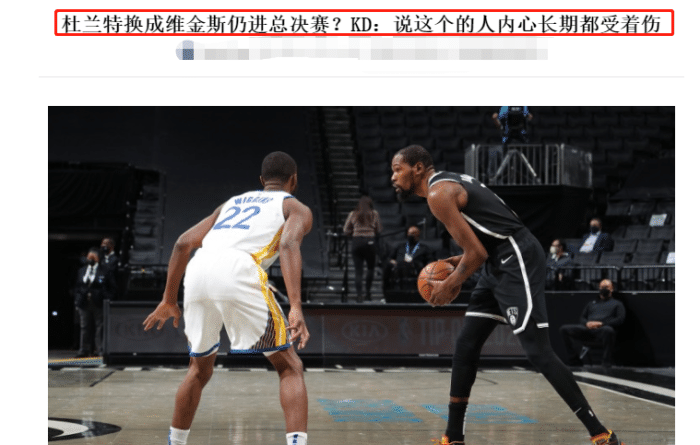 有球迷表示,“勇士把杜兰特换成了维金斯,一样可以打进总决赛,KD怎么看”。而杜兰特也进行回应,“我会说说这些话的人,内心都长期受伤,需要治愈一下”。
