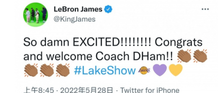 詹姆斯也要失望了,老詹比较青睐库里恩师马克杰克逊,但杰克逊根本不在湖人队选帅计划当中。而詹姆斯还比较支持里弗斯当教练,但还是未能如愿。不过,37岁老詹还是在社媒上欢迎新帅,并且飙脏话庆祝球队确定新主帅。湖人队接下来将开启新的时代,汉姆如何使用威少,也是下赛季一大看点。从目前的情况来看,湖人大概率还是会是詹姆斯+戴维斯+威少的三巨头继续冲击总冠军。