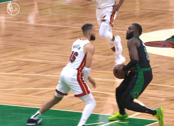 塔图姆扣篮得手,洛瑞的三分命中,怀特和布朗再次追分,布朗两罚全中后,41比40反超1分。洛瑞两罚全中,布朗反击打进,43比42领先1分。热火进攻效率下降,布朗再次得分,并且打成2+1,46比42反超4分,第二节拿到了10分,两节拿到了18分。阿德巴约补篮得手,之后又反击扣篮,凯尔特人再次失误,巴特勒造犯规两罚全中,半场热火48比46领先2分。巴特勒两节21分,带队领先。