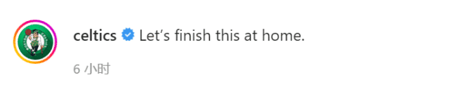 绿军官方晒出了球员们登机飞回波士顿的画面,并配文写道:“让我们在主场结束这轮系列赛!”显然他们想4-2拿下系列赛,不愿再打抢七了。