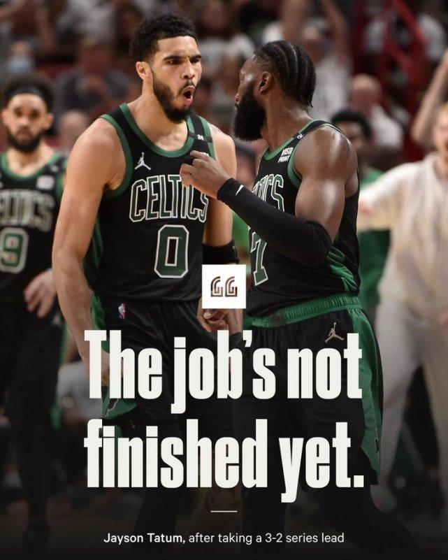 赛后,塔图姆显得非常谨慎,他说我们的工作尚未完成,虽然拿下天王山之战胜利的球队,历史上有超过八成的最终获胜概率。热火一方,作为东部常规赛战绩最好的球队,自然也不会放弃希望,他们会力争G6扳回一城,把系列赛逼进抢七大战。