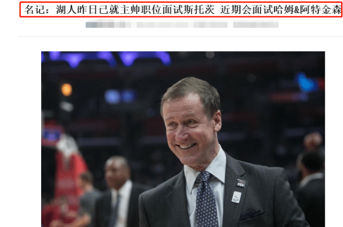 湖人队目前正在选帅,而新主帅人选已经缩小范围,斯托茨和汉姆、阿特金森是三名候选人,湖人主帅将从他们之中诞生。据悉,斯托茨很希望能执教威少,他认为能找到让威少融入到湖人体系中的办法。不过,雄鹿助教汉姆是最大热门,据此前NBA记者报道,如果汉姆成为湖人新主帅,斯托茨可能是第一助教。